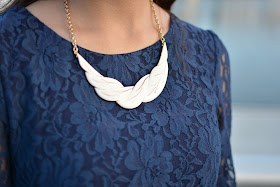 Forever 21 Lace Peplum Top and necklace, H&M gray skinnies, Steve Madden clutch, Rock and Republic pumps, Kate Spade gold watch